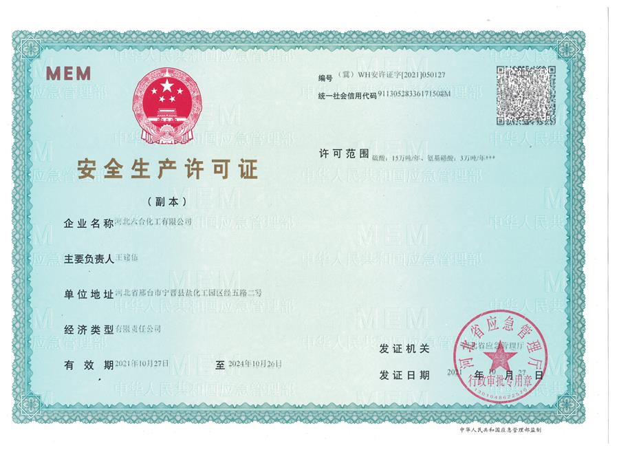 地址:河北省邢臺市寧晉縣鹽化工園區(qū)經(jīng)五路二號 電話:0319-8305606 0319-8305636 傳真:0319-8305966 郵箱:sales@hbliuhechem.com